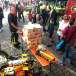 Auch war die aktive Einsatzabteilung der Ortsfeuerwehr war mit einem Fahrzeug vertreten. Feuerwehrkameraden standen interessierten Besuchern mit Rat und Tat zur Seite. Bei schönem Wetter wurden viele Fragen zum Thema Feuerwehr, vorbeugendem Brandschutz und dem ausgestellten Fahrzeug beantwortet. Viele Besucher nutzten die Gelegenheit den Umgang mit einem schweren Rettungsgerät der Feuerwehr testen. Diese Gerätschaft benötigt die Feuerwehr, um verletzte Personen aus einem Unfallfahrzeug zu befreien.