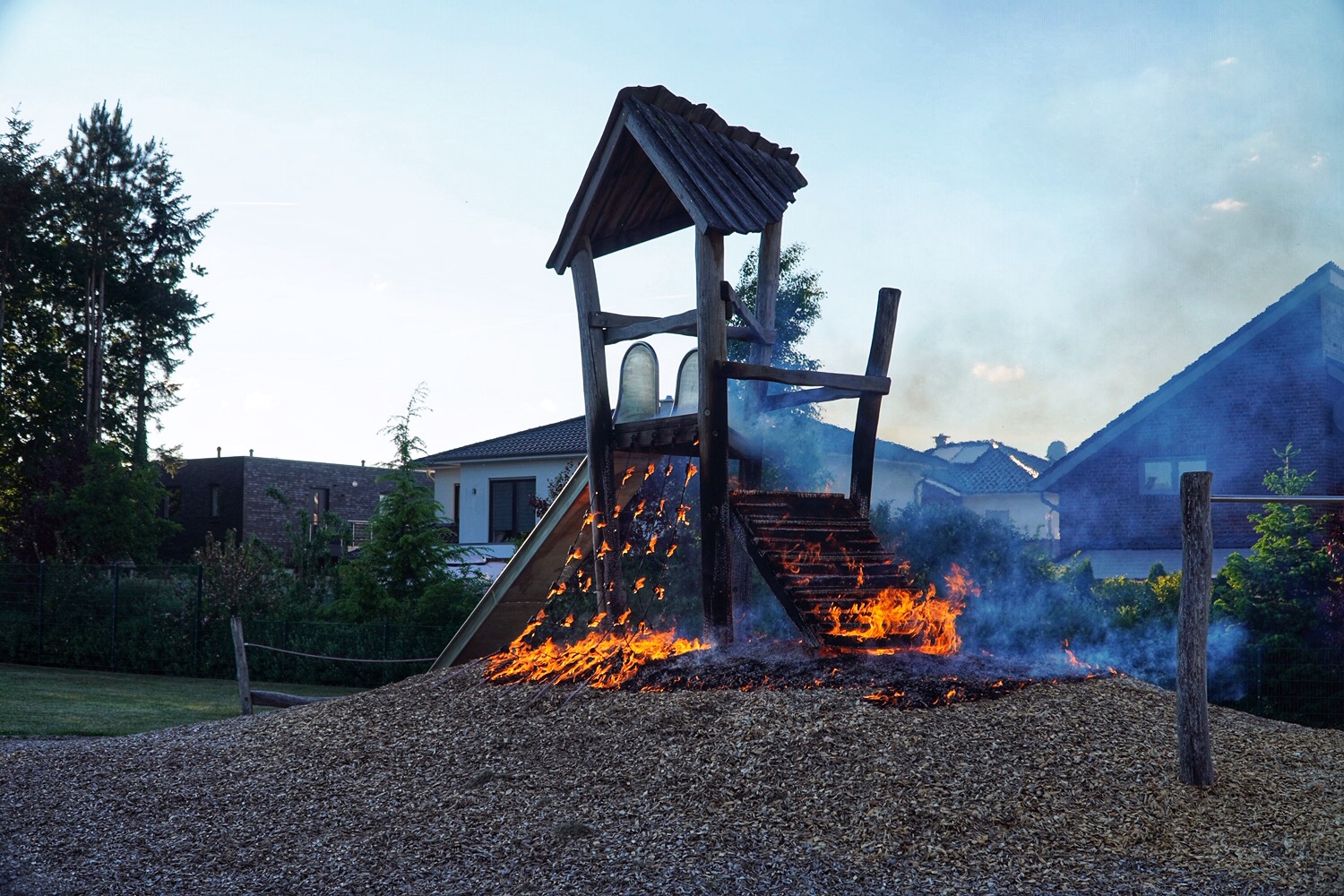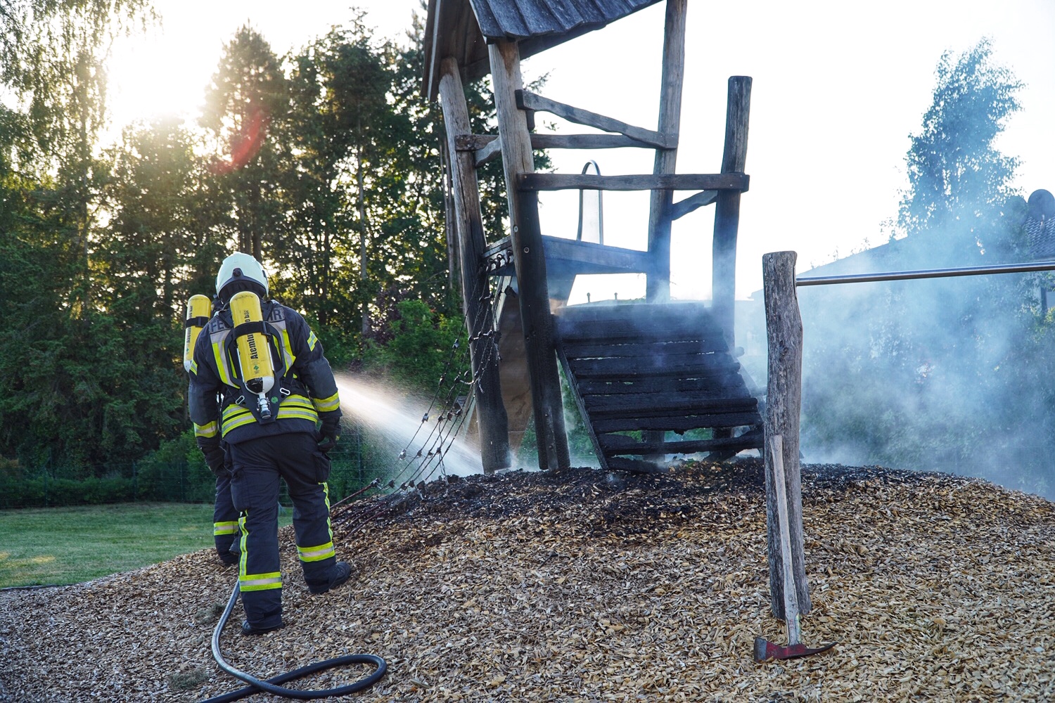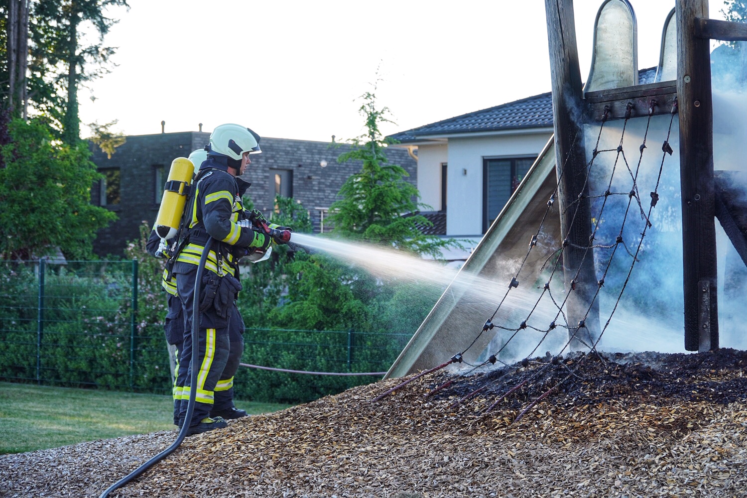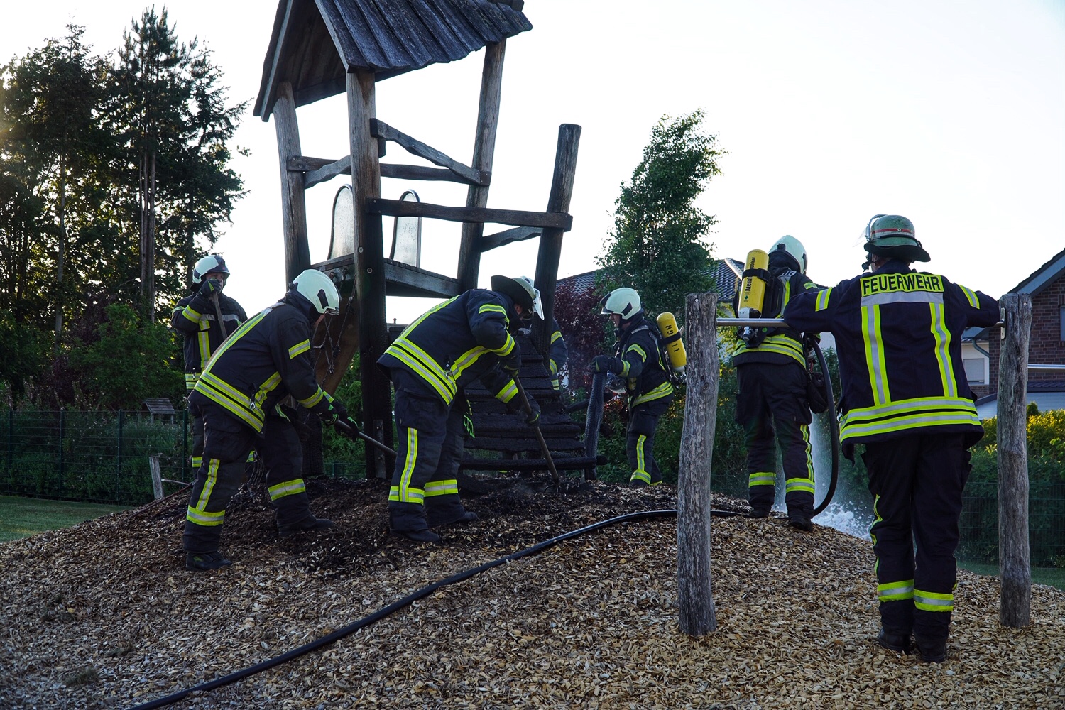 Aus bisher noch ungeklärter Ursache ist am Sonntagabend ein Spielgerät auf einem Spielplatz zwischen dem Treidelweg und dem Prahmweg in Brand geraten. Der Brand des Spielgeräts griff schnell auf die Hackschnitzel darunter über. Die Feuerwehr Nordhorn rückte mit drei Fahrzeugen aus um den Brand zu löschen. Dies gelang zügig.
